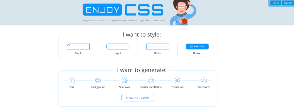 If you consider yourself good with CSS, EnjoyCSS is for you. This very simple tool, that will help you to survive hard times. It lets you design your elements with a simple UI and gives you the relevant CSS output.
