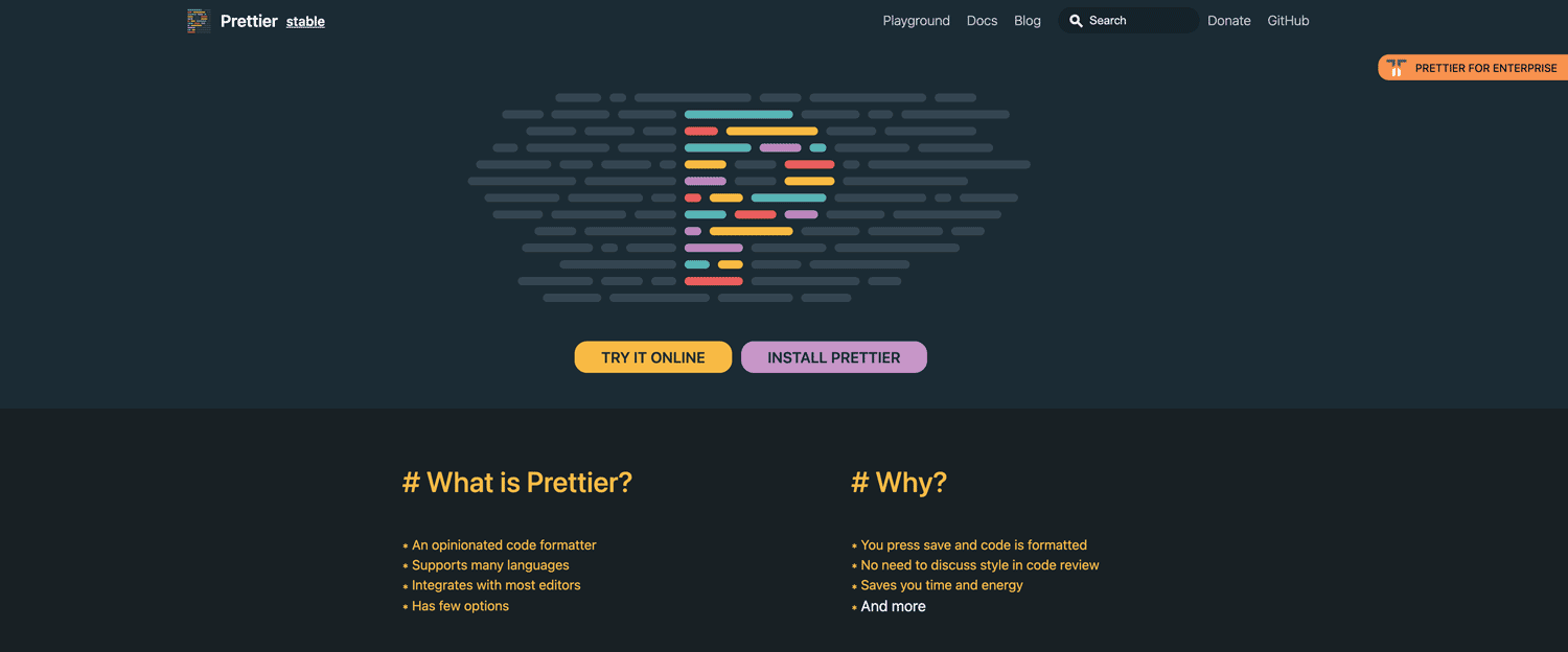 If you are looking for an opinionated code format, Prettier is the best option for you. It supports JavaScript, including ES2017, JSX, Angular, Vue, Flow, TypeScript, and more. As a result, this system helps you to remove your original styling and replaces it with a standard and consistent styling adhering to the best practices in front-end development. Furthermore, you can download it on your computer or use their online version playground where you can prettify your code.